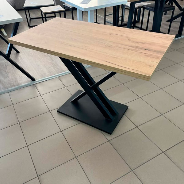 Каркас стола может быть окрашен в любой цвет из каталога RAL в соответствии с вашими предпочтениями. При этом столешница создается из ЛДСП толщиной 18 мм, и для вас представлен широкий выбор оттенков и текстур из коллекции декоров Egger и Kronospan.